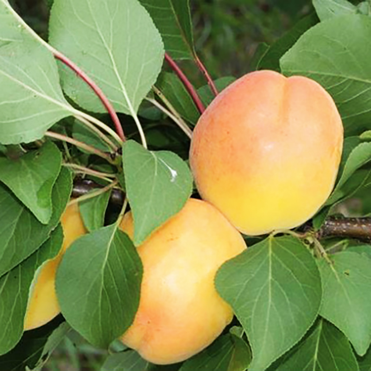 ПЛОДИ: середні 60-85 г, округлі, трохи стиснуті, яскраво-жовті з невеликим рум’янцем. М’якоть також світло-жовта, смак солодкий з легким відтінком кислинки, збалансований, ароматний, за консистенцією і смаком схожий на сорт “Ананасний”.