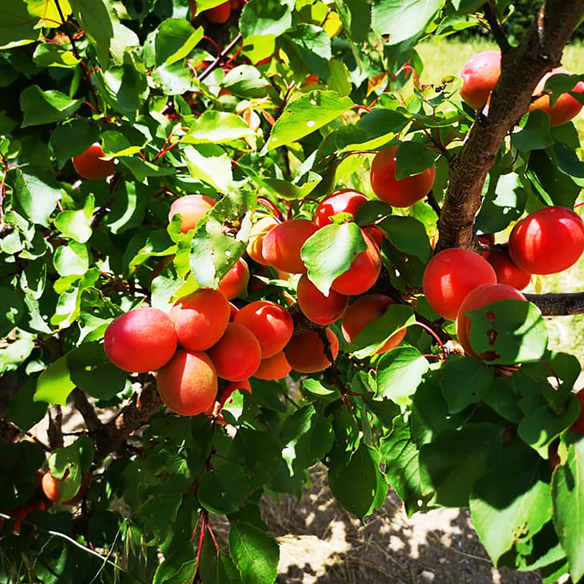 ПЛОДИ: середні 60-95 г, кругло-подовженої форми, червоно-помаранчевого кольору з щільною м’якоттю і приємним смаком з особливим ароматом. Плоди добре тримаються на дереві під час дозрівання. Самопильний і врожайний, особливо на молодих гілках-прутиках. Сорт привабливий і цінується також за дуже ранні терміни дозрівання. Кісточка відділяється легко.