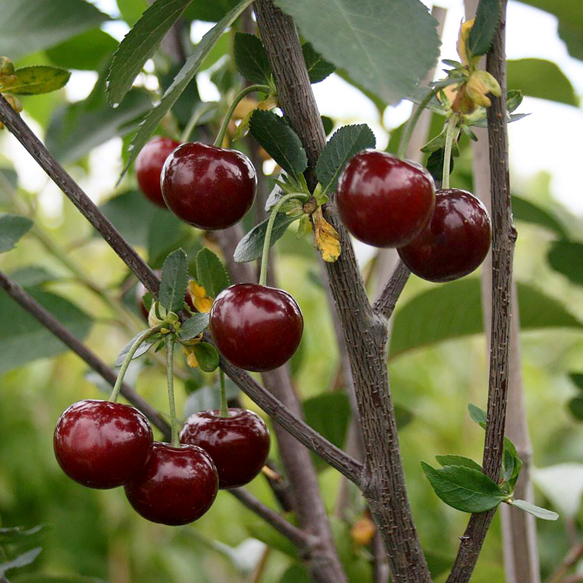ПЛОДИ: великі 9.7 г, форма тупосерцеподібна, воронка вузька, верхівка кругла, з білою точкою, забарвлення темно-червоне, при повному дозріванні майже чорне, м’якоть і сік темно-червоні, м’якоть середньої щільності. Черешок короткий, товстий. Кісточка яйцеподібної форми, відділяється від м’якоті середньо. Плоди красиві, соковиті, солодкі, смак 4.5 бала за 5-бальною шкалою, добре відділяються від черешка, універсального призначення.