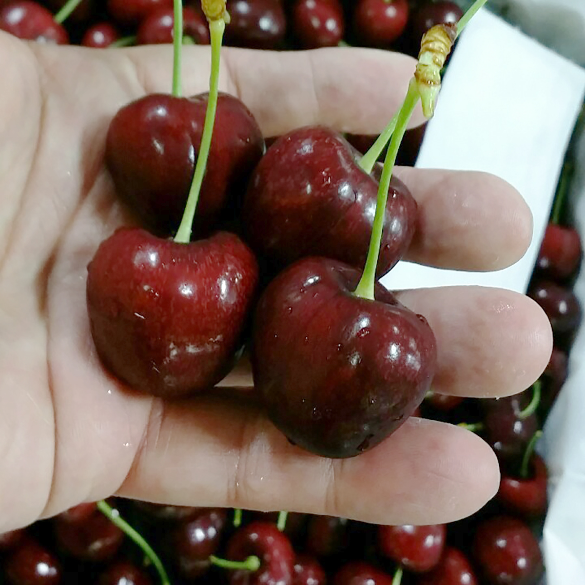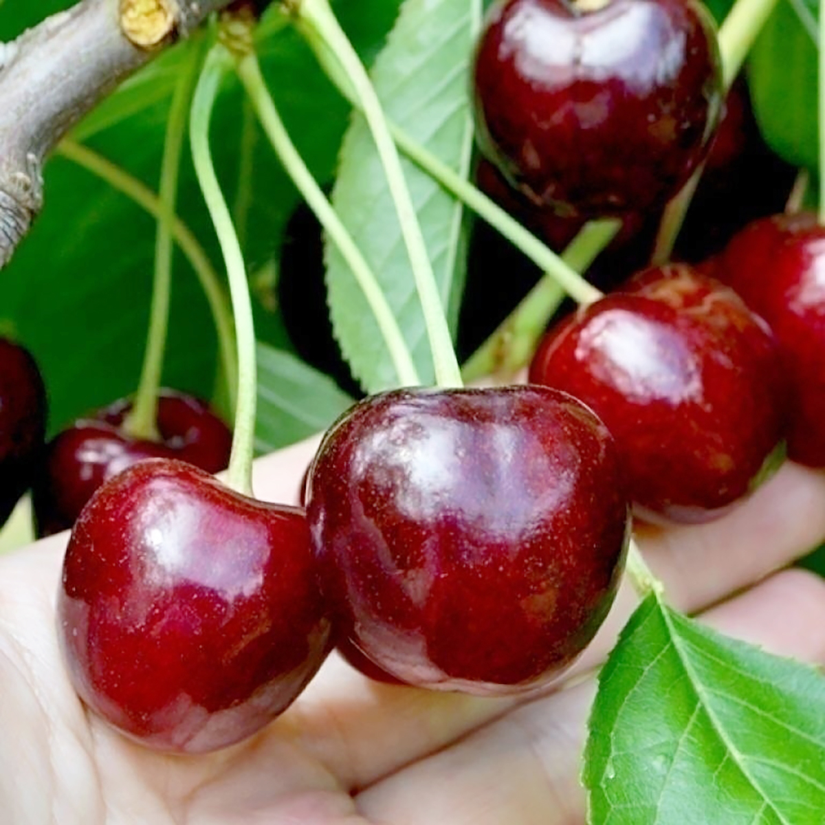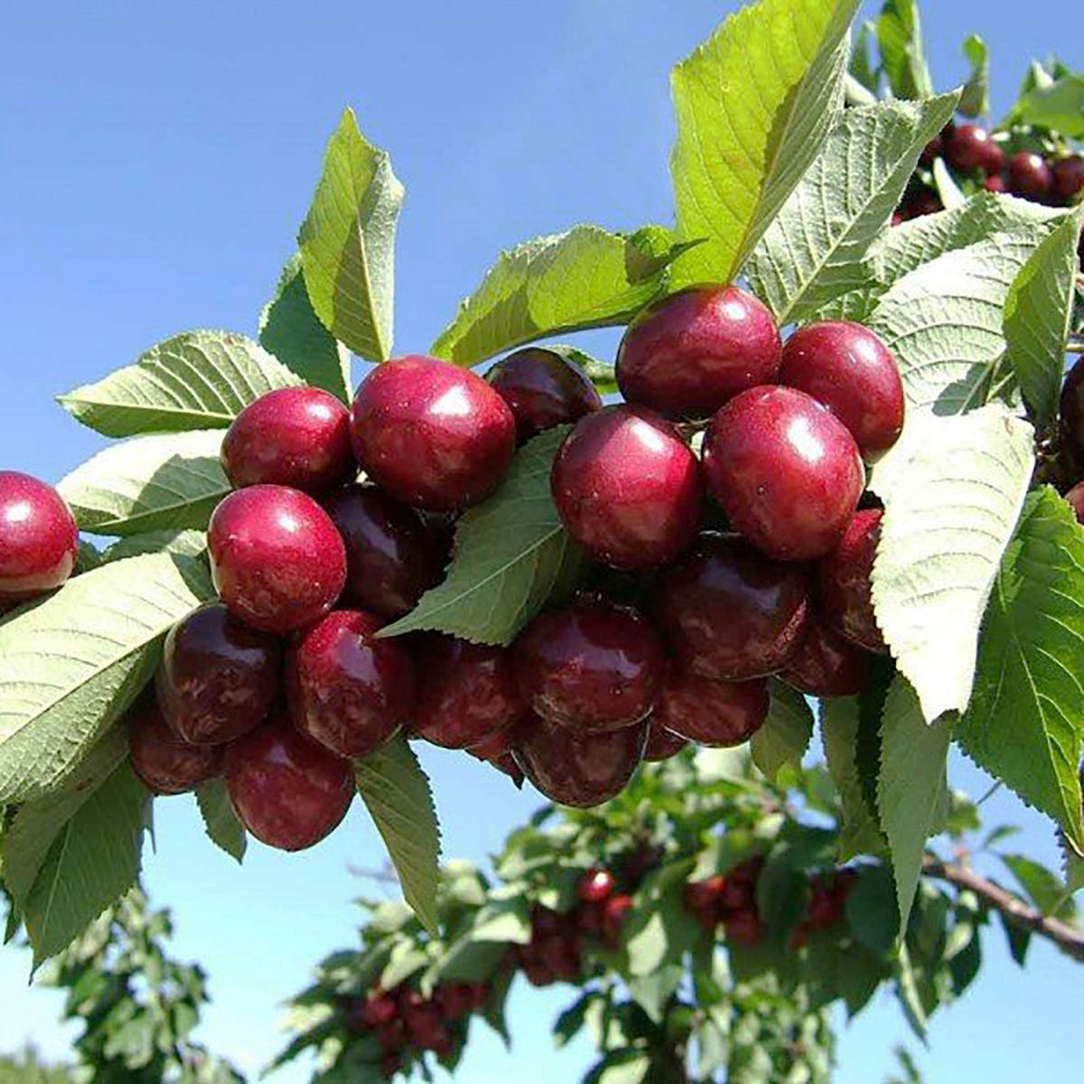 ПЛОДИ: досить великі, масою 8-12 г, широкосерцеподібні, з приглушеною верхівкою, темно-червоні, майже чорно-червоні, сік інтенсивно темно-червоний. М’якуш темно-червоний, з рожевими жилками, напівхрусткий, соковитий, винно-солодкий. Шкірка щільна, темно-червона, при повному дозріванні практично чорна, блискуча, легко відділяється від м’якуша. Кісточка відділяється легко.