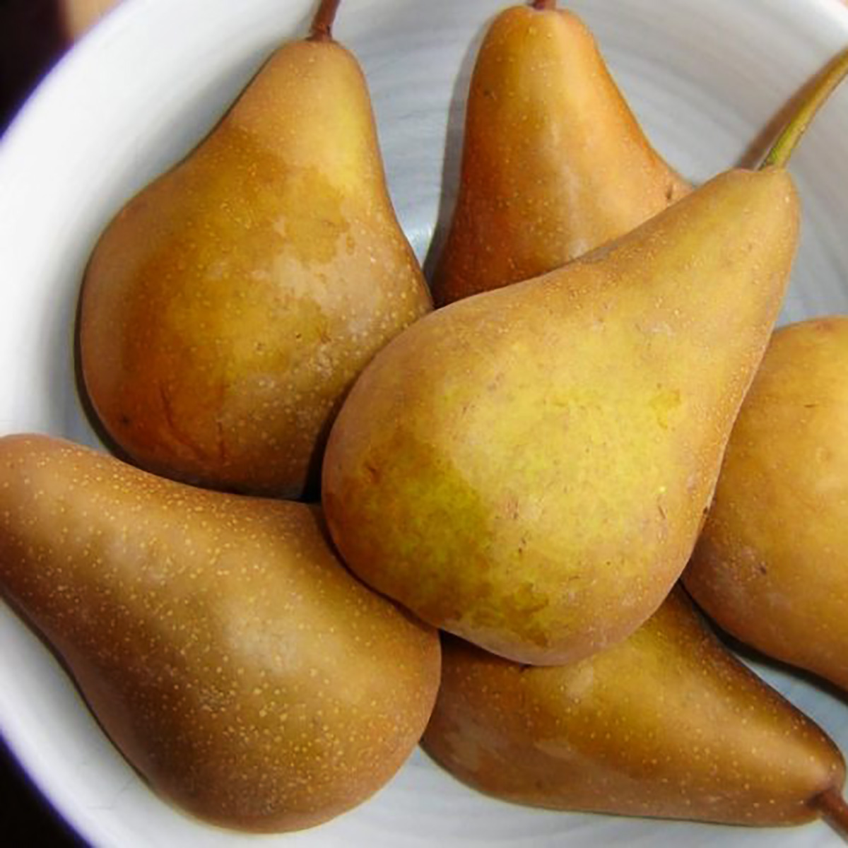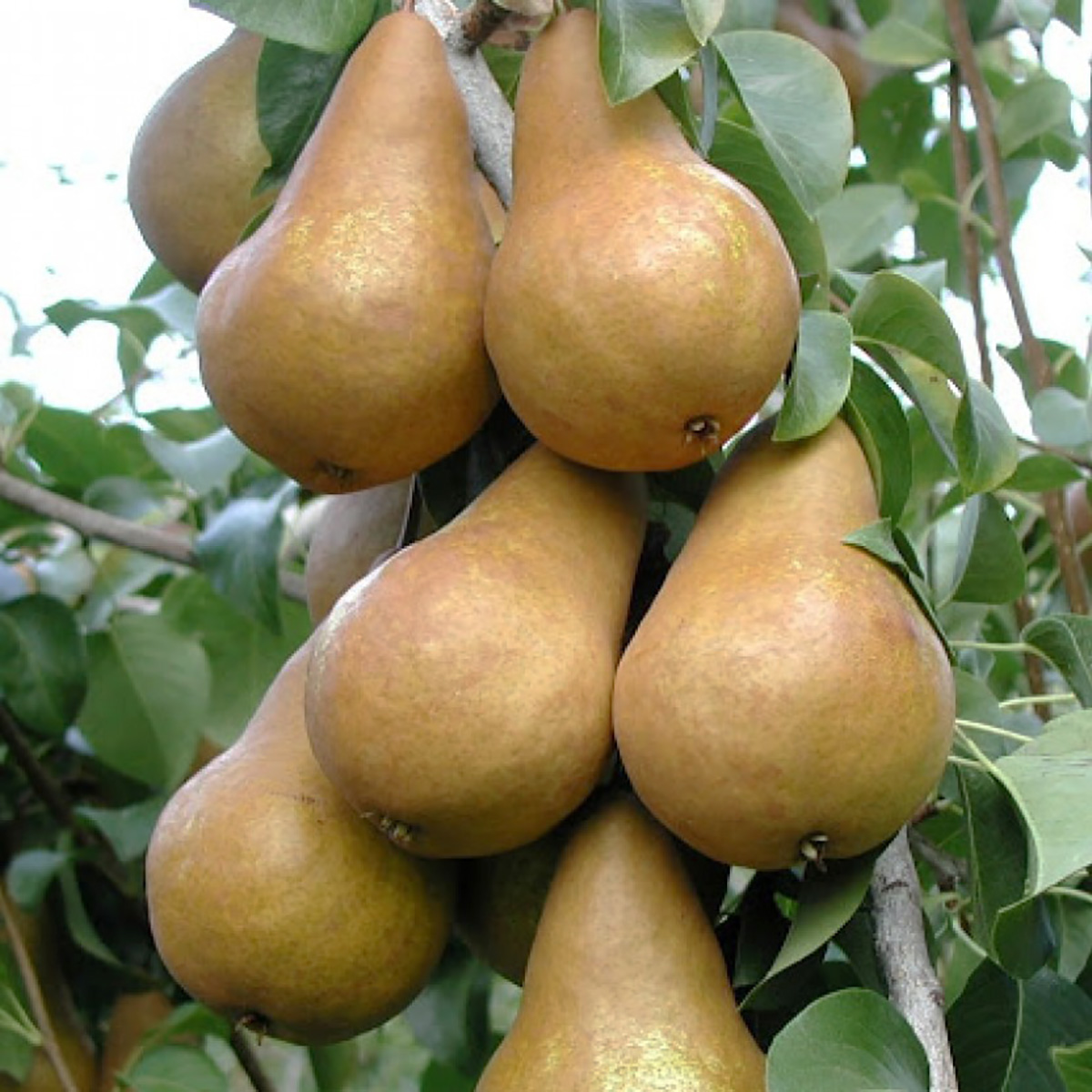 ПЛОДИ: середні або великі, масою 150-220 г, привабливі на вигляд, витягнуто-колбоподібної форми, проте часто на одній і тій же деревині зустрічаються плоди, які відрізняються за формою. Шкірка груші тонка, жовтувато-коричнева, вся в ржавчині, шорстка, під час збору плодів сіро-зелена, при повній стиглості – золотиста, вкрита великою кількістю сіро-рудих плям. Плодоніжка довга, згинена, товста. М’якоть біла або кремова, ніжна, тануча, дуже соковита і солодка, ароматна, з мигдалевим смаком і пряністю, чудового смаку (4,4-4,8 бали). Транспортабельні, зав’язуються парами і трійками, але міцно утримуються на дереві і навіть під час дозрівання не відпадають.