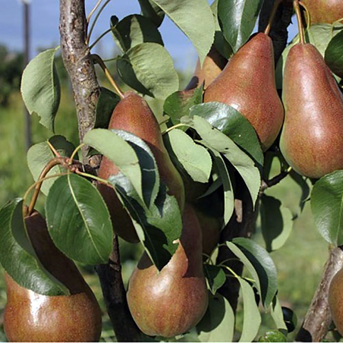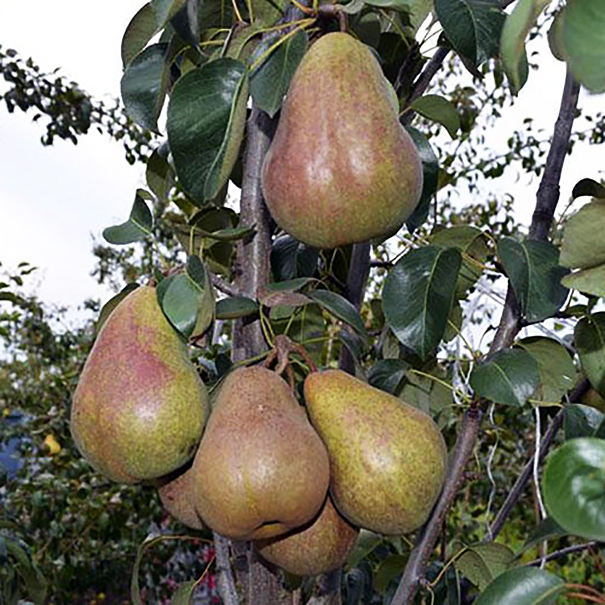 ЛИСТЯ: темно-зеленого кольору, з гладкою, блискучою поверхнею. Відмінним ознакою цієї груші (як і багатьох інших сортів, отриманих з використанням Макс Ред Бартлет) є бордово-червоне забарвлення верхніх листків молодого приросту до того моменту, поки на ньому відсутня закладка верхівкових бруньок. Проте як тільки верхівкові бруньки закладаються, листя на молодому прирості стають темно-зеленими. Кора (особливо верхівок приросту) забарвлена в бордово-червоний колір.