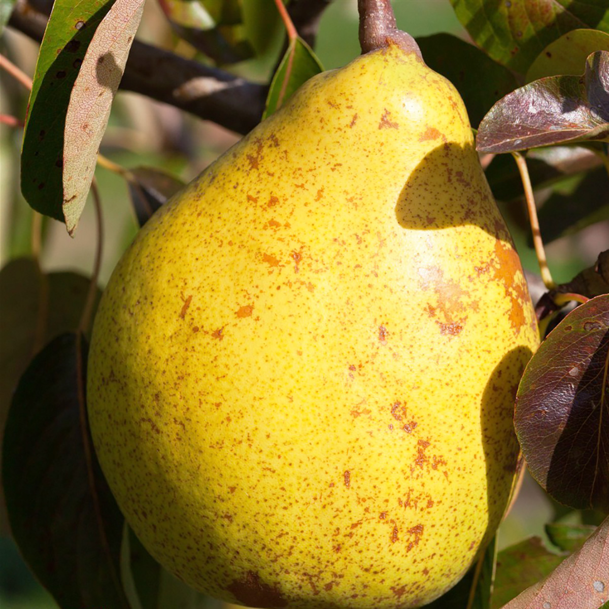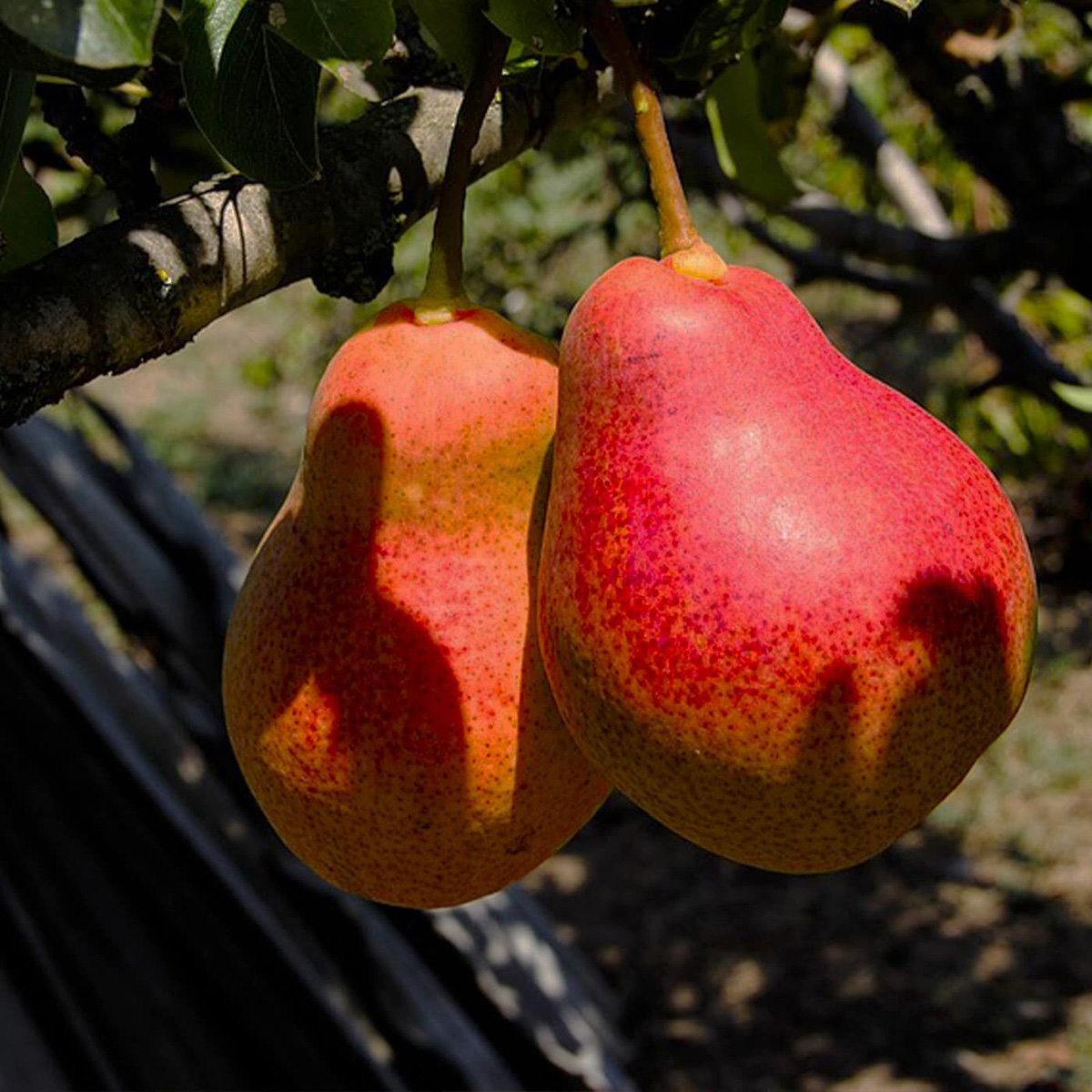 ПЛОДИ: мають “виставкову” грушевидну форму. Плоди груші привабливі від 250 до 700 г, мають привабливі червонуваті відтінки під час дозрівання. Усередині м’якоть ніжно-кремового кольору, солодка і соковита на смак. Збір врожаю з десятирічних дерев на одному гектарі складає 150 центнерів.
