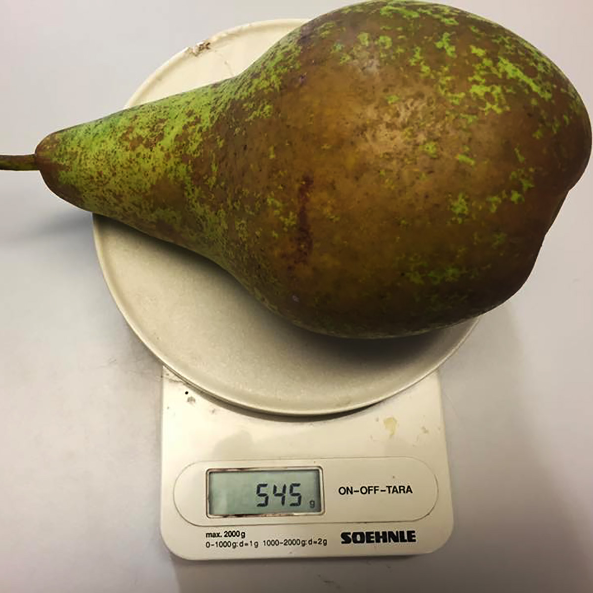 ПЛОДИ: середнього розміру, 130-150 г, дуже великі або дуже малі зразки зустрічаються рідко. Форма подовжена, схожа на пляшку. Шкірка груба, щільна, іноді навіть жорстка, зеленувато-жовтого кольору. Якщо на ній помітні шершаві руді або золотисто-коричневі плямочки з тієї сторони, де груша освітлювалася сонцем, це нормально. М’якоть жовтавата, кремова або рожевавата, масляниста, буквально тане на язиці, дуже соковита і ароматна, дрібнозерниста. Вона м’яка, але при цьому досить щільна. Хвістець у цієї груші короткий, але товстий, зігнутий дугою. Розташований хвістець, як правило, не по центру, а слідком нахиливши від основи плоду.