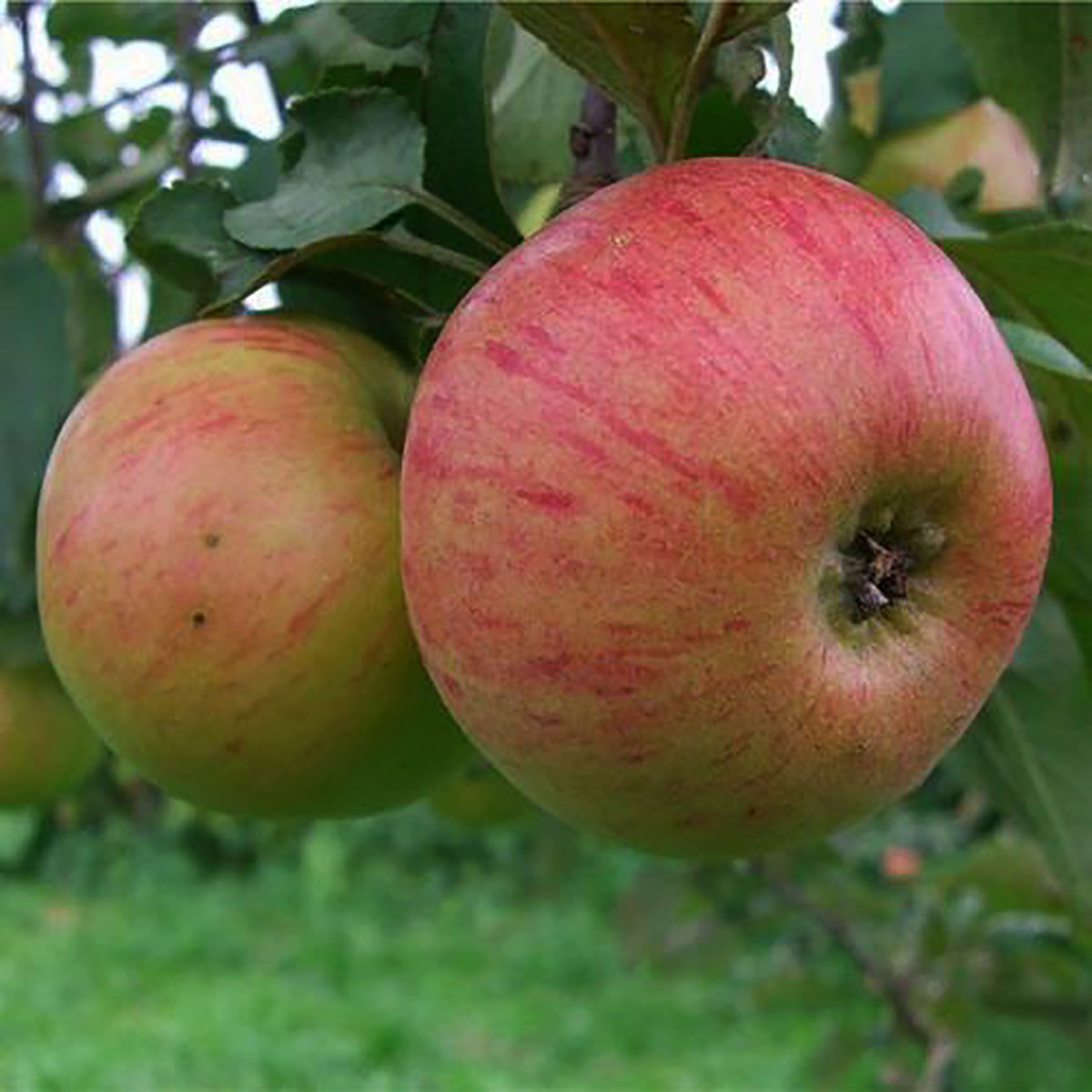 ПЛОДИ: Середня маса плодів становить 100-110 грамів. Вони мають округло-конічну або плоско-округлу форму. Шкірка основної частини плодів світло-зелена, а покривний колір — червоний, який утворює полоси на мармуровому фоні. М’якоть має жовтуватий колір. Яблука солодко-медові, з високим вмістом цукру (близько 14%) і дуже низькою кислотністю. Надзвичайно високе відношення цукру до кислоти (до 200). Цей сорт має дієтичне значення, і смакові якості плодів не втрачаються протягом тривалого часу.