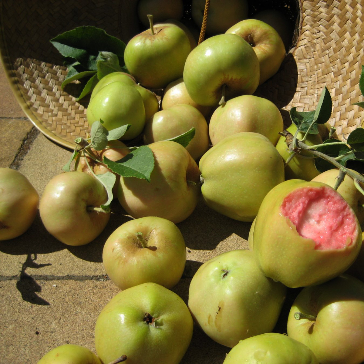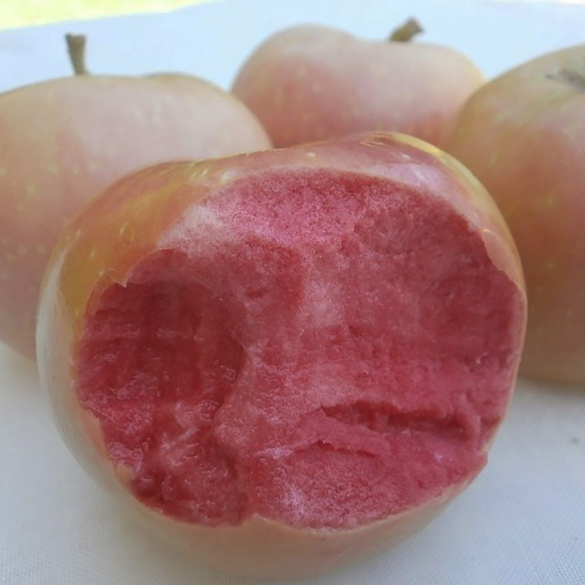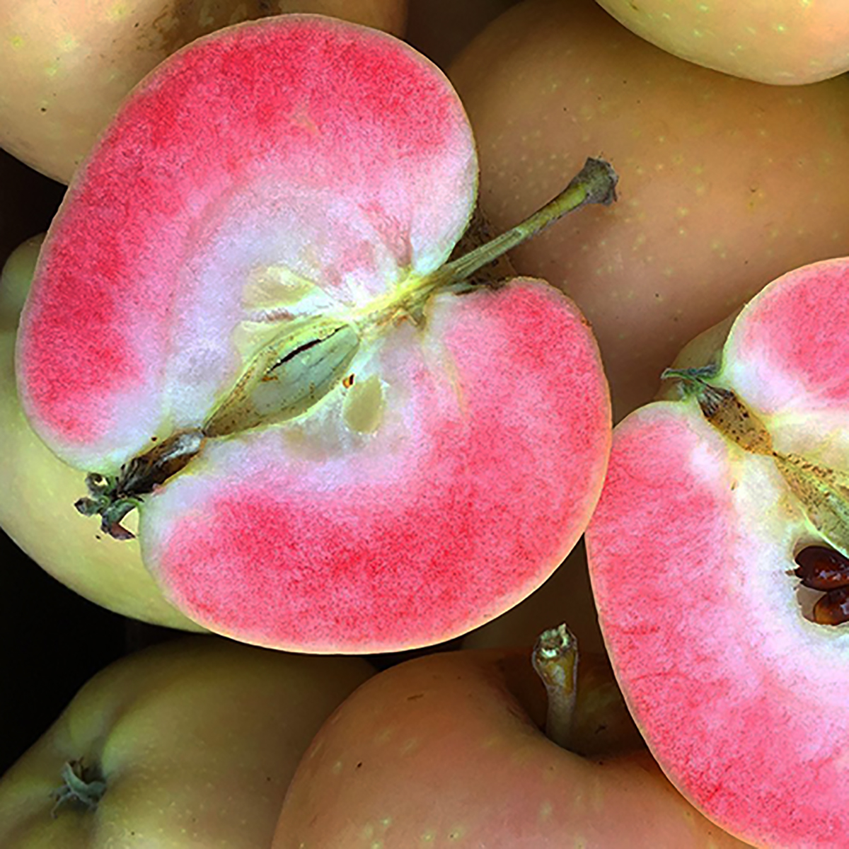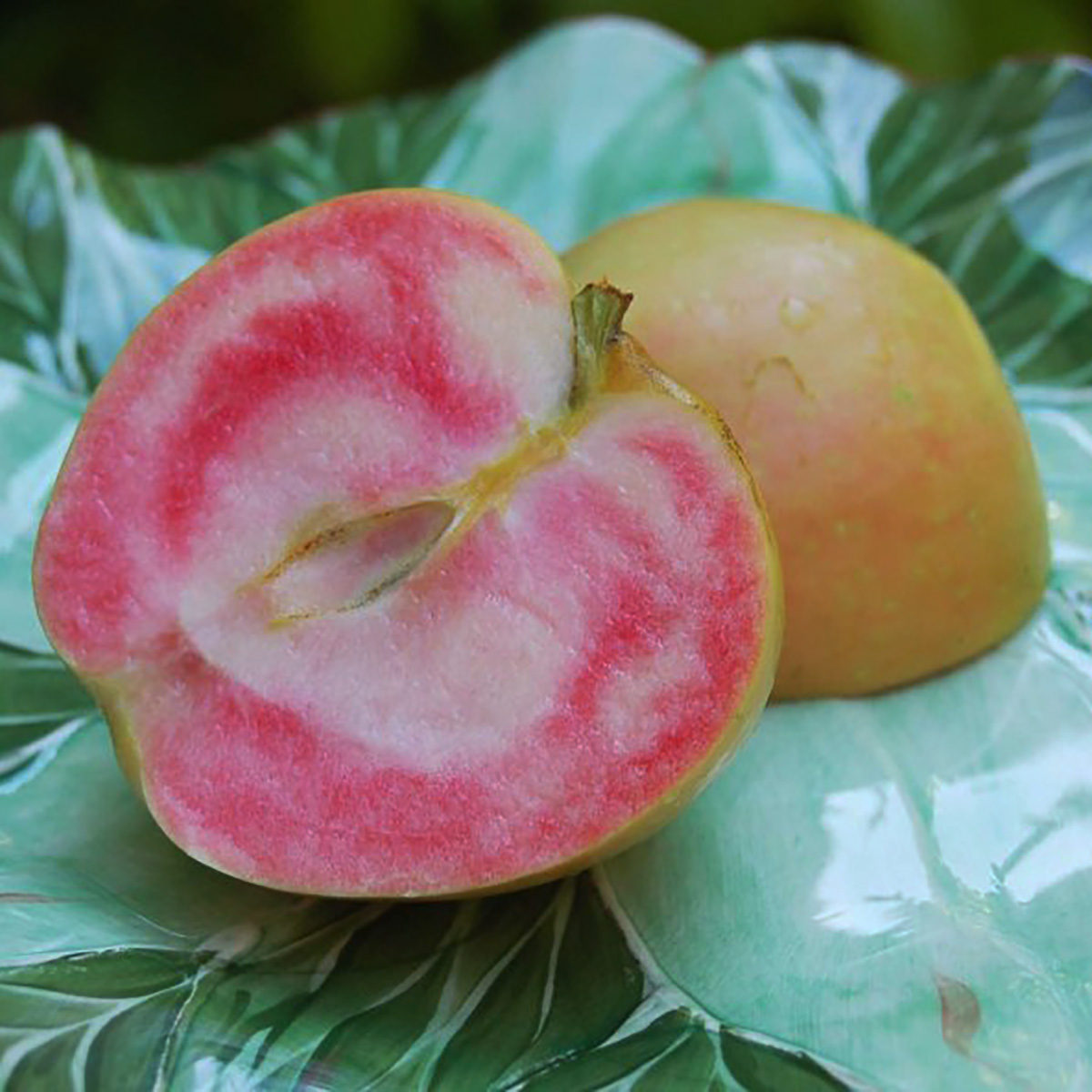 ОПИС СОРТУ: Яблуня Пінк Перл (Pink Pearl) – новий для України, дуже цікавий і неординарний сорт американської селекції, виведений в Каліфорнії. Цей осінній сорт відноситься до червоном’яких видів і має свої особливості. Його шкірка напівпрозора, світло-зелена, покрита численними білими плямами, а м’якоть має насичений рожево-червоний колір, що робить яблука досить привабливими і популярними на світовому ринку.