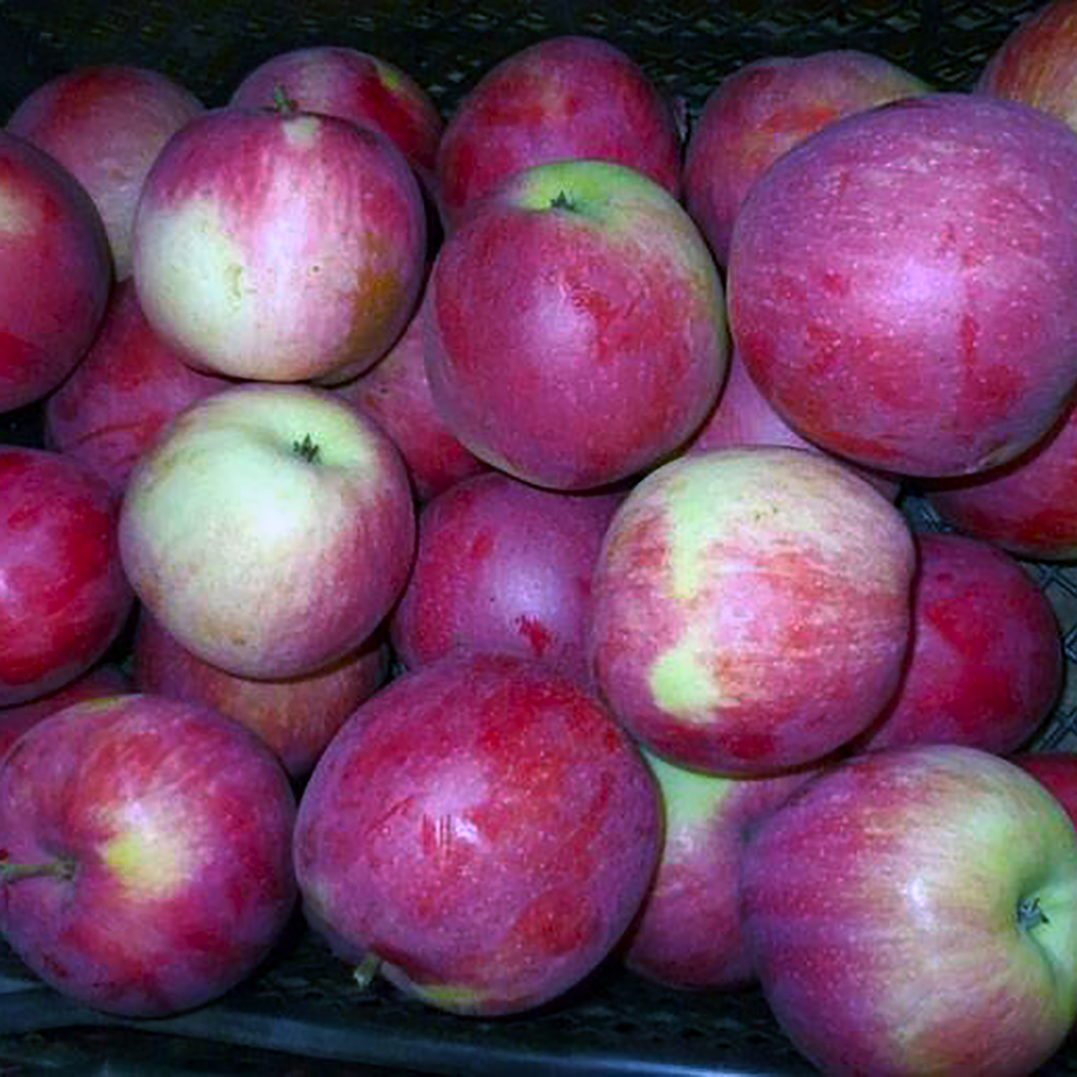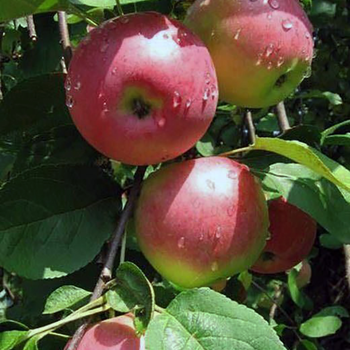 ПЛОДИ: Зовні досить апетитні і привабливі, за формою можуть бути круглими, продовгувато-круглими або слабко конусоподібними в верхній частині, без ребер або з ледь вираженим одним ребром, шкірка блискуча. Яблука за розміром можуть бути середніми і великими (середня вага яблука зазвичай знаходиться в межах 120-180 г). Основний колір яблук на момент збиральної стиглості – жовтувато-зелений, покривний колір рівномірно розподілений практично по всій шкірці густо-червоною смугою з слабким сірим налітом, також часто є світлі підкіжкові точки, іноді з корковінням в середині. М’якоть у яблук жовтувато-біла або світло-кремова, середньозернистої структури, помірно ароматна, досить соковита, ніжна, злегка масляниста, аромат приємний, але слабкий. Смак дуже хороший, кисло-солодкий, з пряними нотками, сорт визначається як столовий. Дегустаційна оцінка смакових якостей яблук за 5-бальною шкалою становить 4,4-4,6 бали.