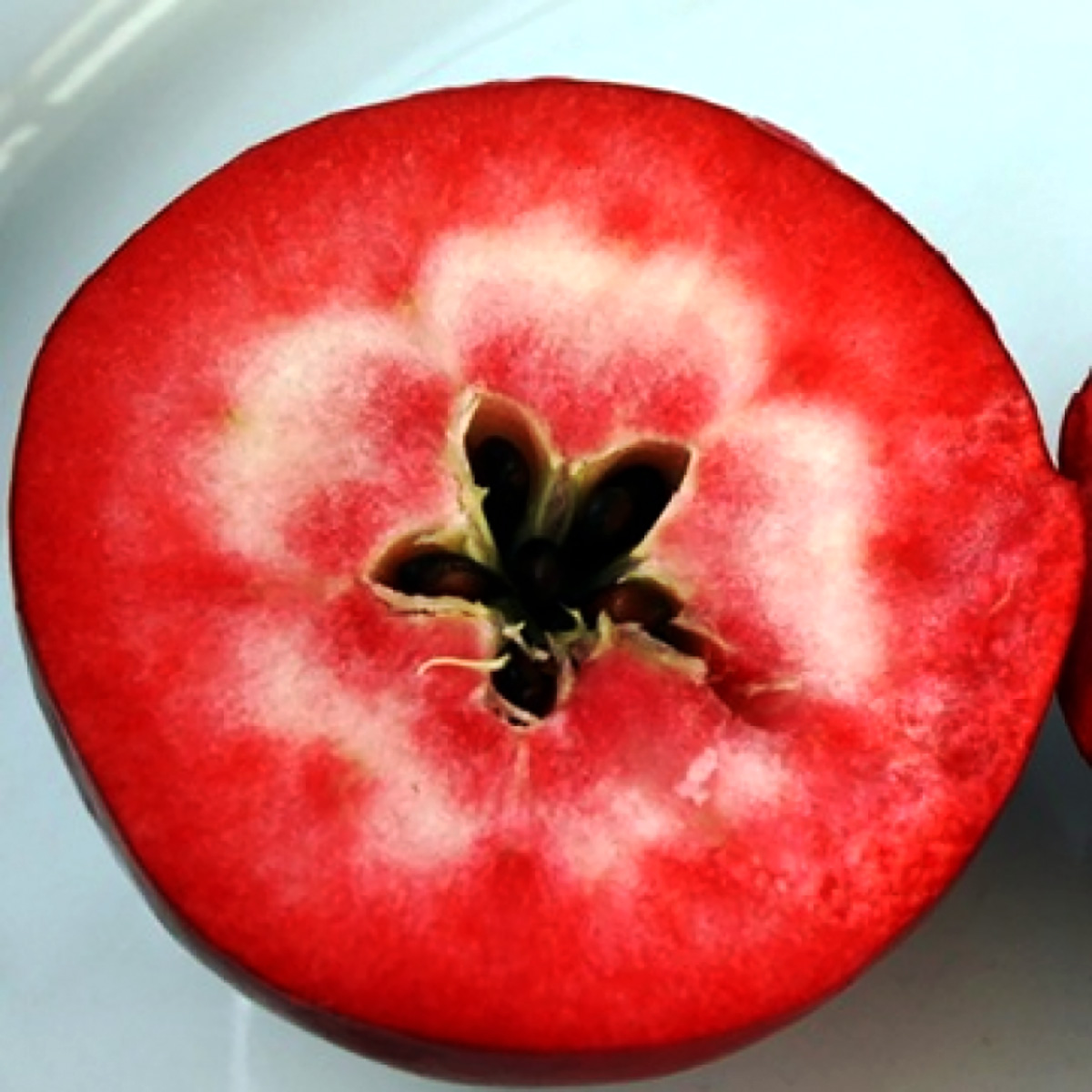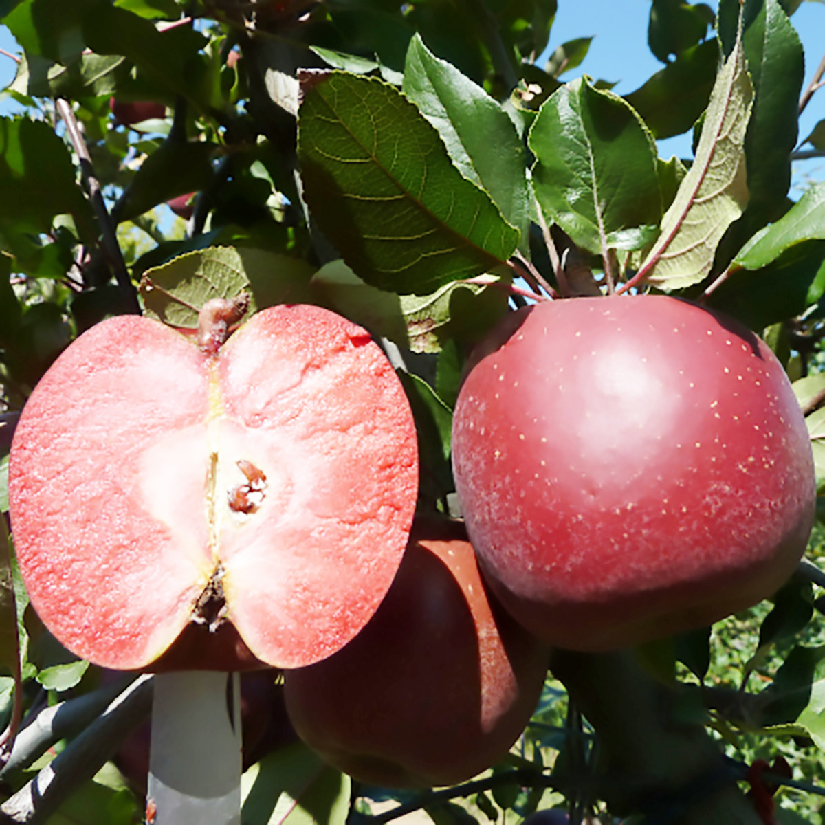 ОПИС СОРТУ: літньо-пізній сорт яблук із червоною м’якоттю. Селекція польських садівників.