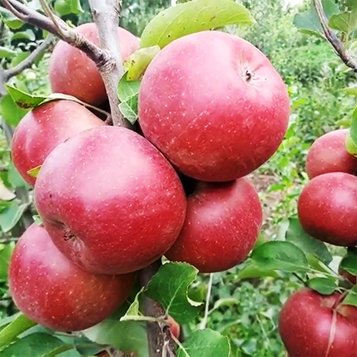 ПЛОДИ: середньої маси 140-170 г, червоні, кругло-конічної форми. М’якоть насичено рожева, смак десертний, солодко-кислий, нагадує смак граната, присутні нотки ягідних культур. Сік має рожевий колір.