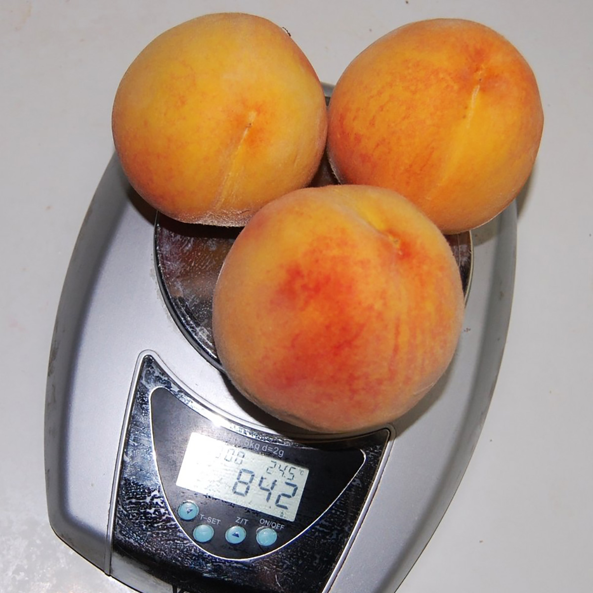 ПЛОДИ: Округлі, масою 140-160 г, при нормуванні досягають 180-250 г. Яскраво-жовті з червоним загаром, дуже красиві. М’якість щільна, жовта, солодка, соковита, з вираженим ароматом та чудовим смаком. Сорт ідеально підходить для консервування. Схильний до осипання. Опушення середнє.