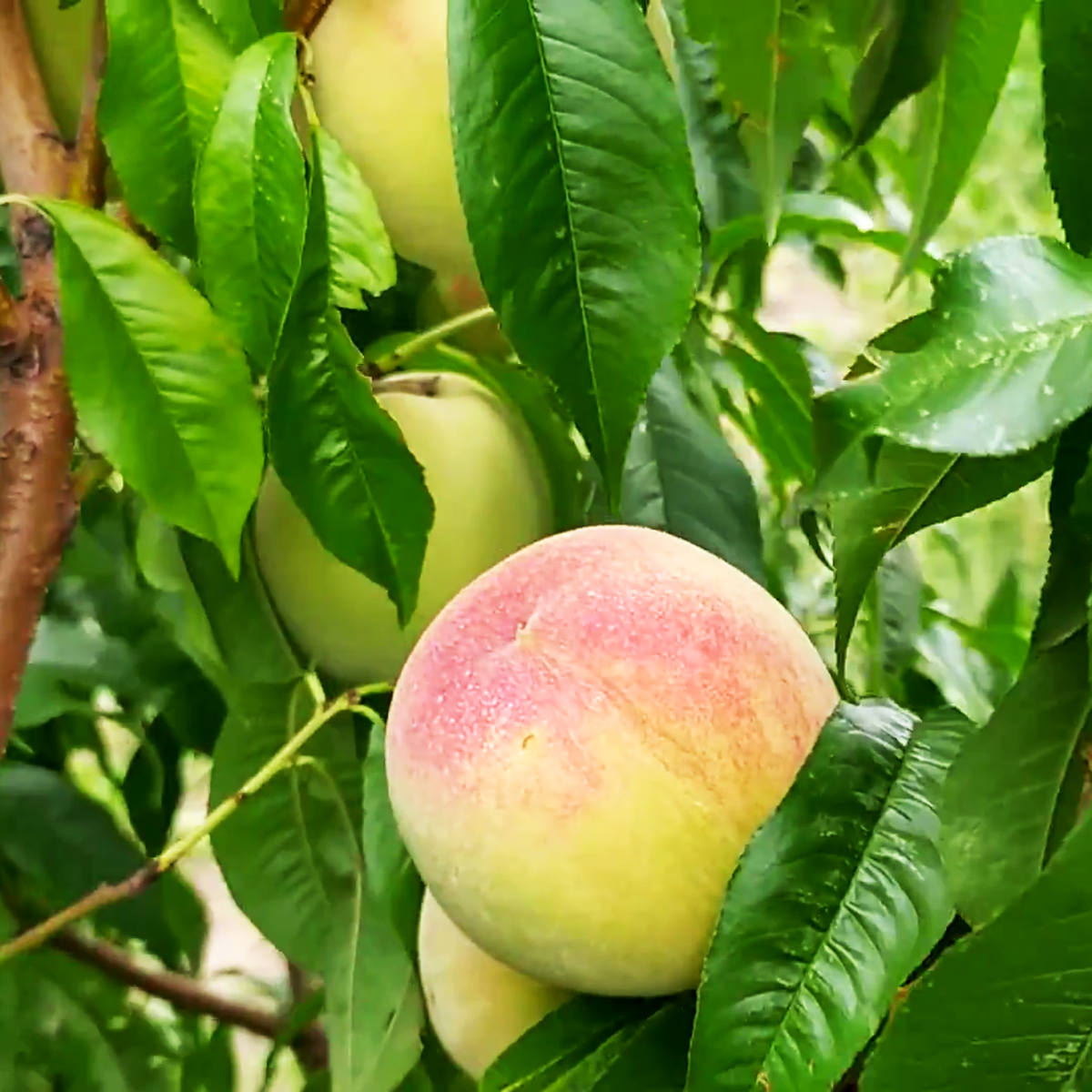 ПЛОДИ: великі, 100-180 г, овальні, трохи стиснуті з боків. Черевний шов яскраво виражений. Основне забарвлення світло-кремове з розмитим червоним рум’янцем. Шкірка тонка, еластична, легко відділяється від м’якоті. М’якоть біла, соковита, з гармонійним смаком. Дегустаційна оцінка – 5 балів з 5. Кісточка велика, легко відокремлюється.