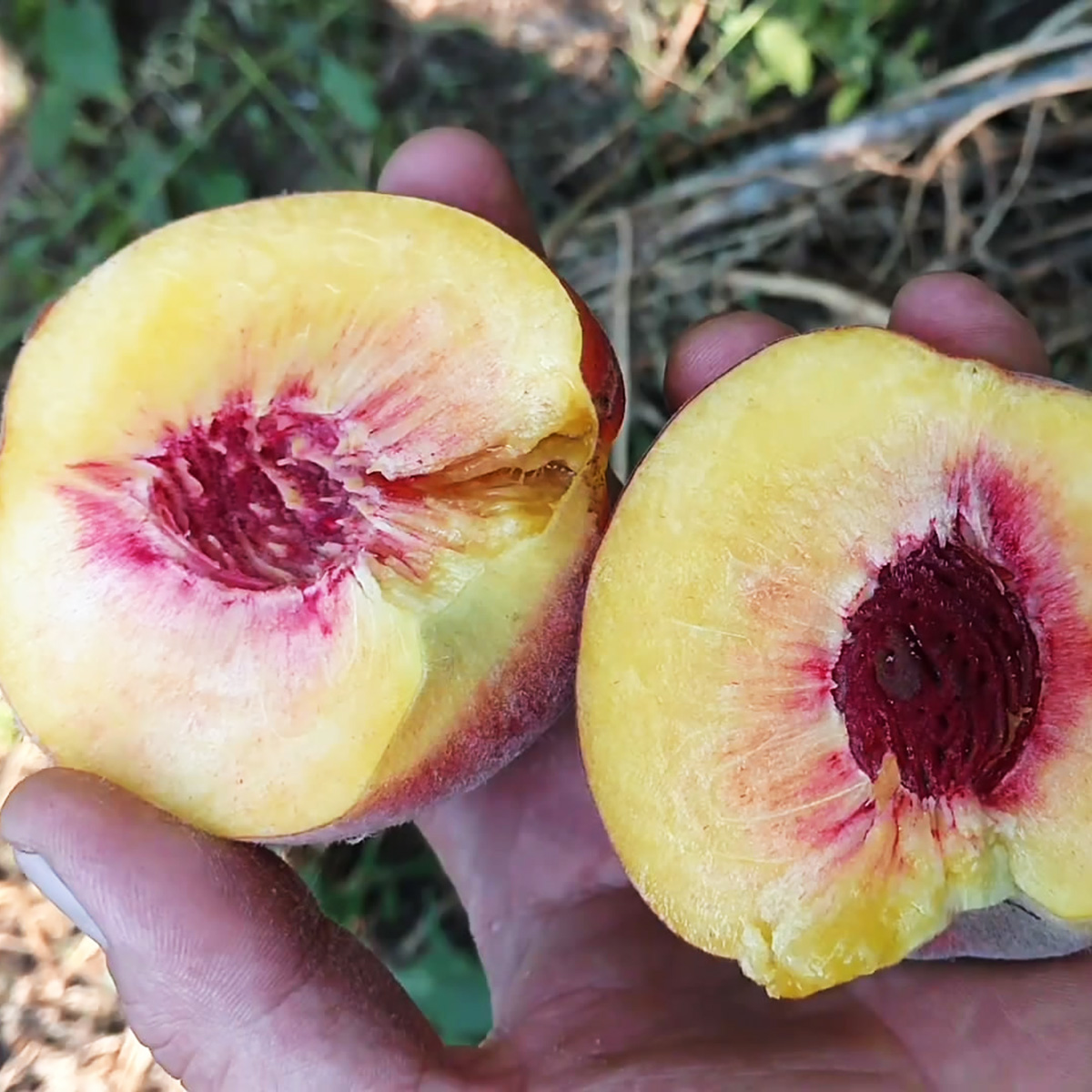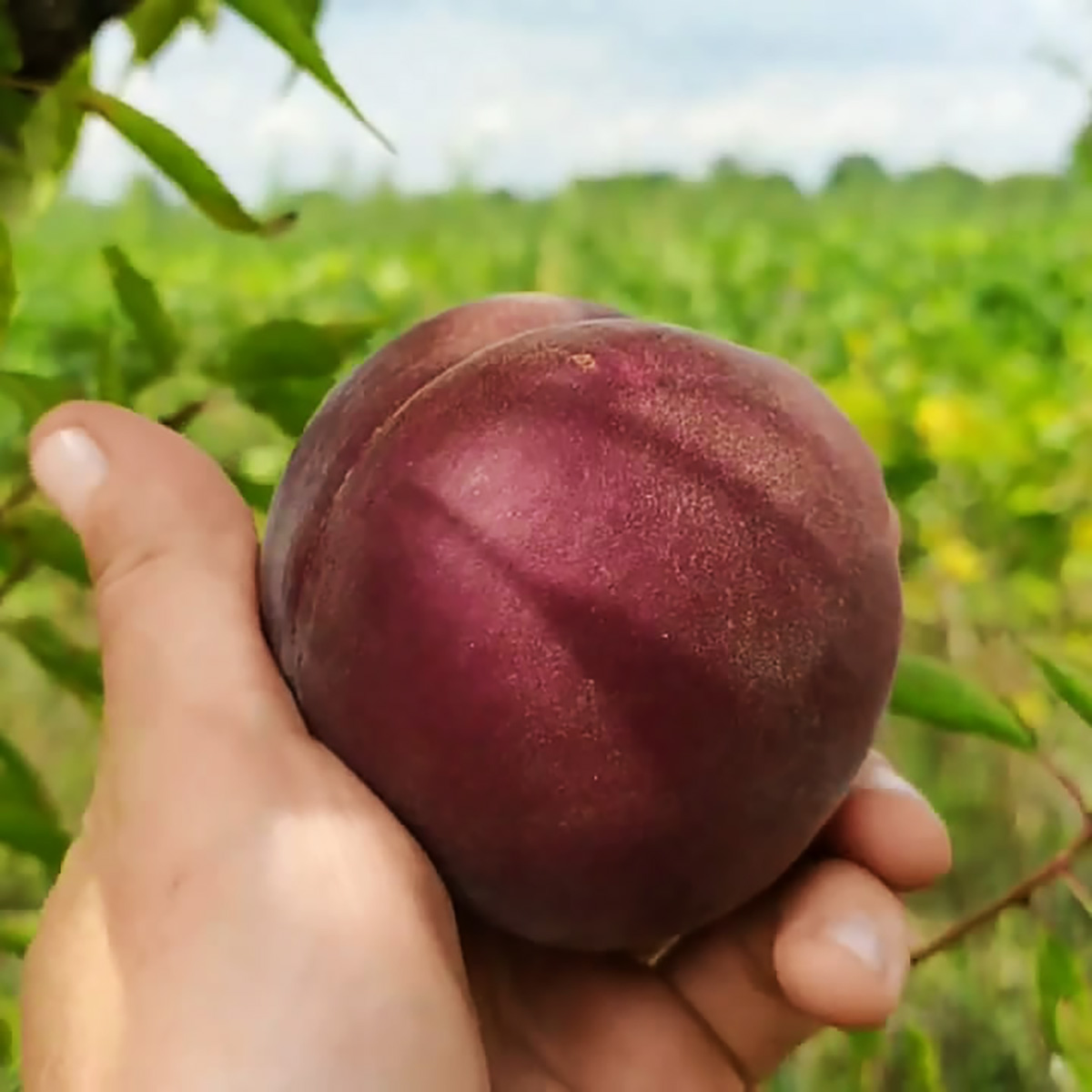 ПЛОДИ: Великі, середня маса приблизно 200-340 г, темно-фіолетового кольору. При повному дозріванні колір плодів стає практично вишневим з фіолетовим відтінком. Смак солодкий. Низький вміст кислоти і високий вміст цукрів. М’якість жовта, щільна, середньої соковитості. Смакові якості вважаються одними з найкращих серед сортів персика. Опушення слабке.