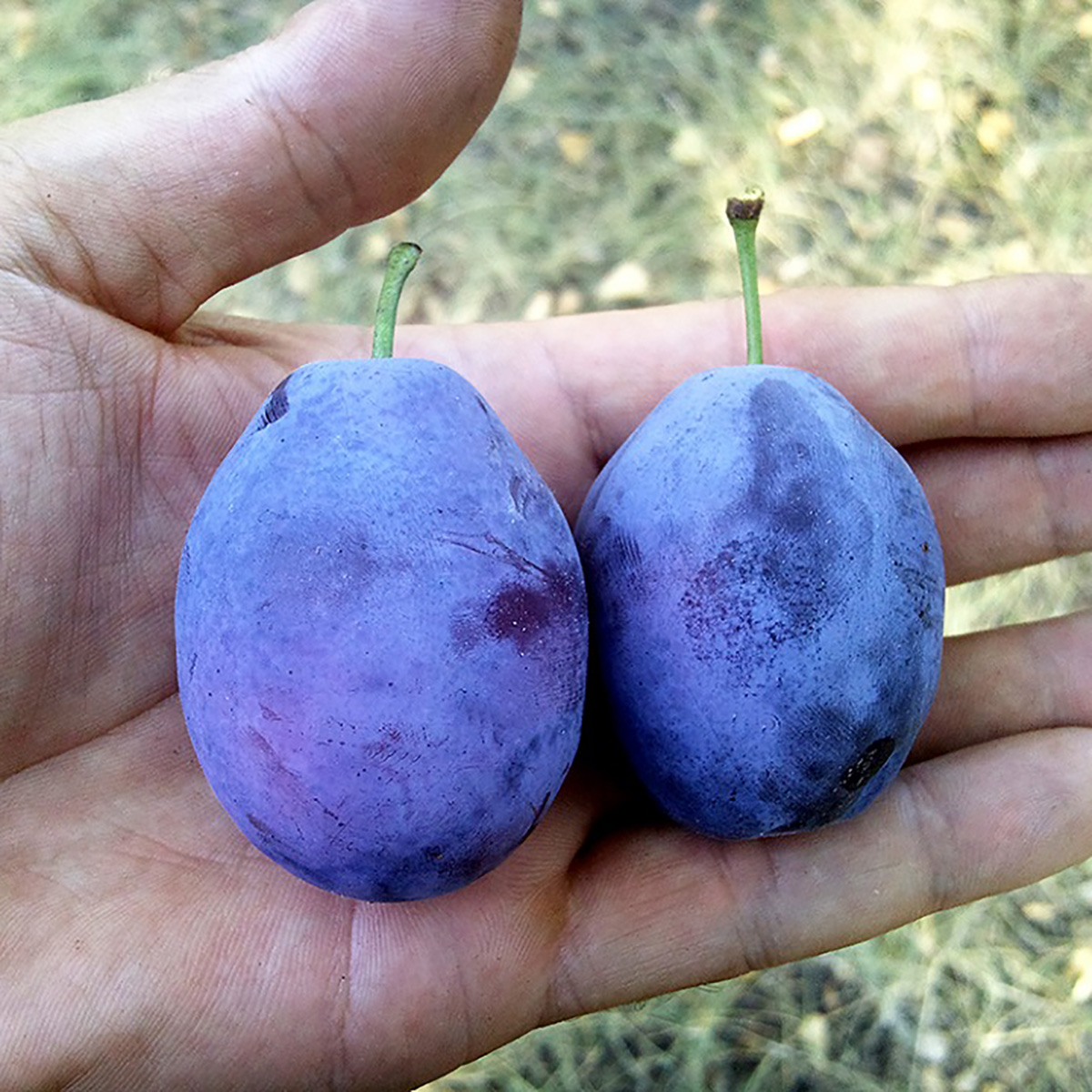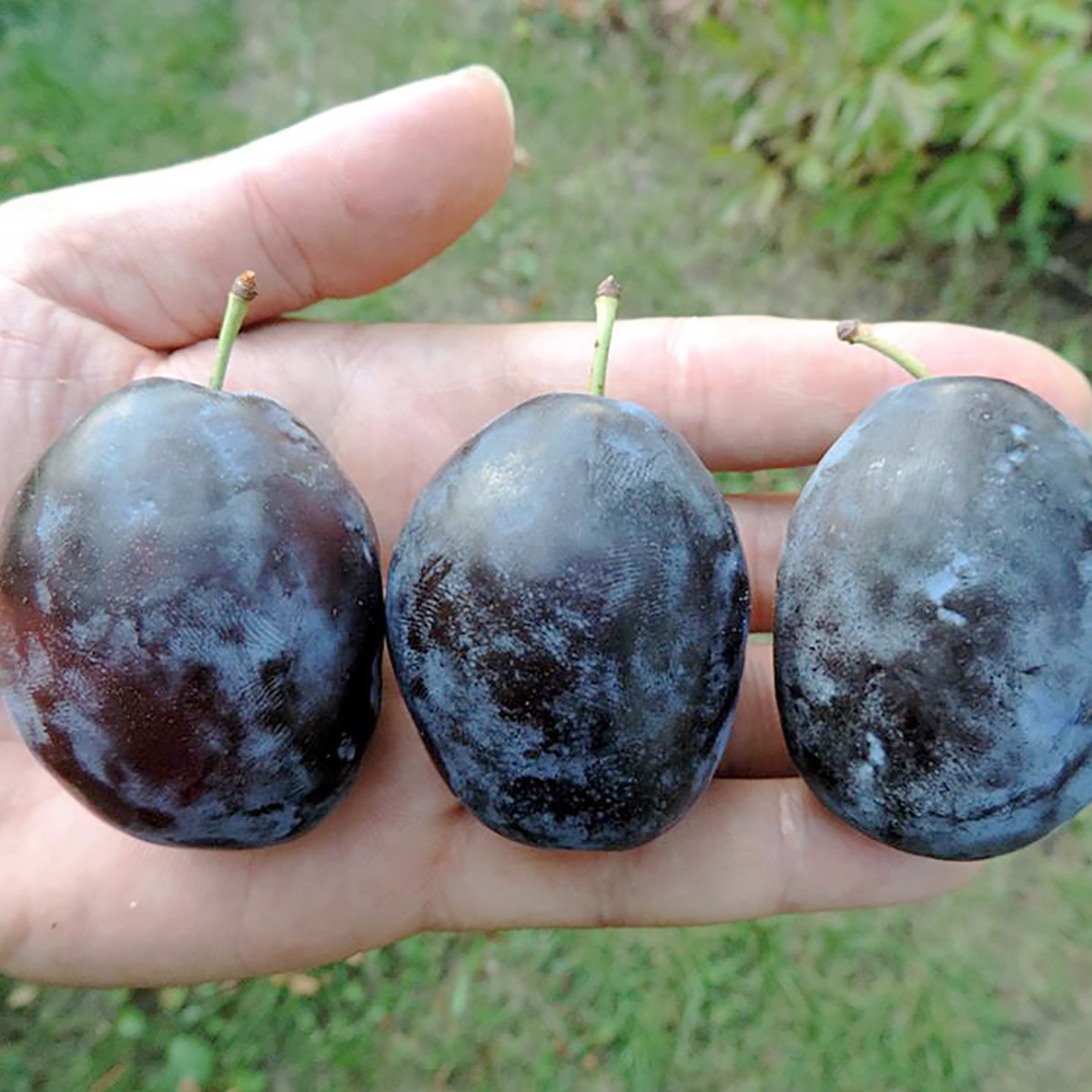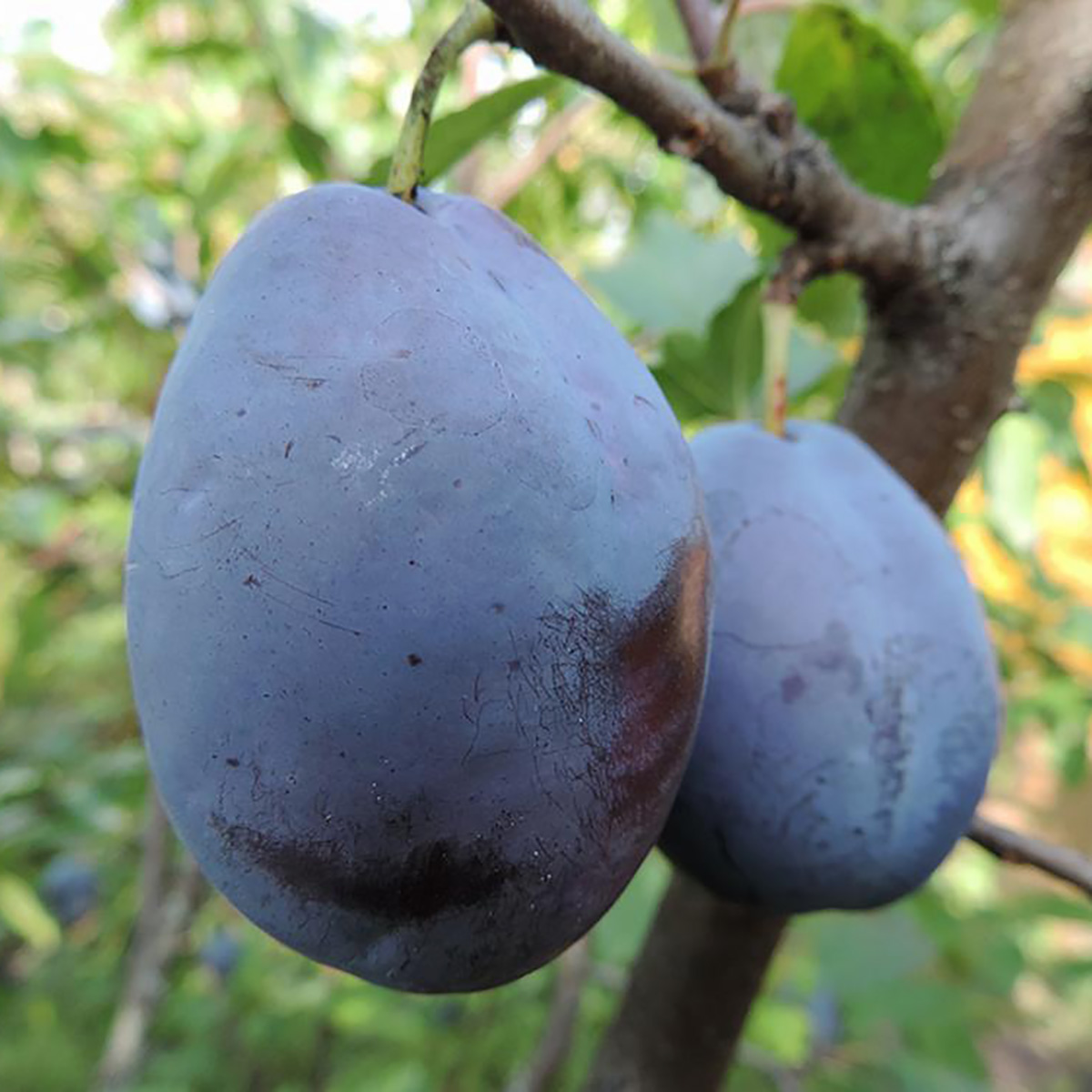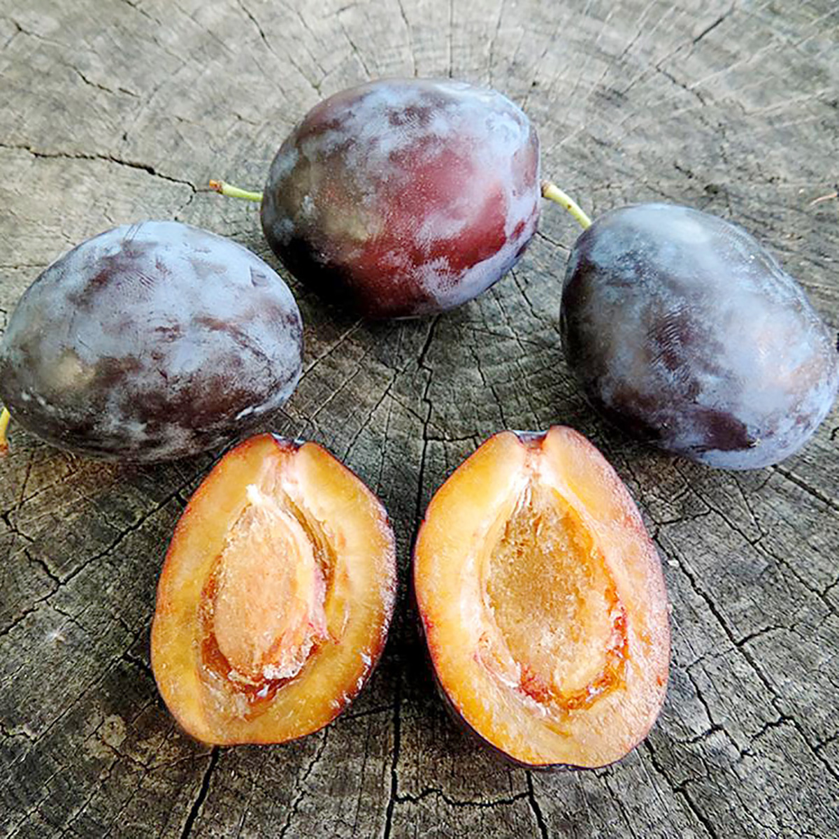 ПЛОДИ: великі, вагою 50-60 г, овальної форми, трохи зігнуті. Шкірка фіолетово-синя або бордово-синя з невеликим восковим нальотом. М’якоть жовта або помаранчево-жовта, хрустка, смачна, бічний шов виражений не яскраво. Кісточка добре відділяється.