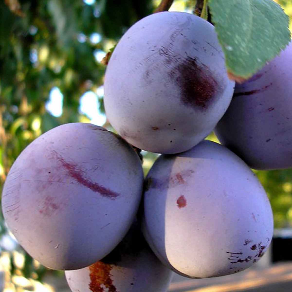 ПЛОДИ: великі масою 40-60 г. Забарвлення основне світло-жовте, покривне червоно-фіолетове, єдине. Підшкірних плям багато, забарвлення їх сіре. Восковий нальот густий. Живильна шва слабко виражена, не розтріскується. Шкірка тонка, щільна, легко знімається, консистенція рихла. Забарвлення м’якоті жовто-зелене, на повітрі трохи затемнюється. Консистенція м’якоті волокниста, щільна, соковита. Кісточка: витягнуто-овальна, середнього розміру. Верхівка кругла, основа витягнута. Центральне жилку добре виражено. Сорт смачний в свіжому вигляді, але більше підходить для виробництва чорнослива.