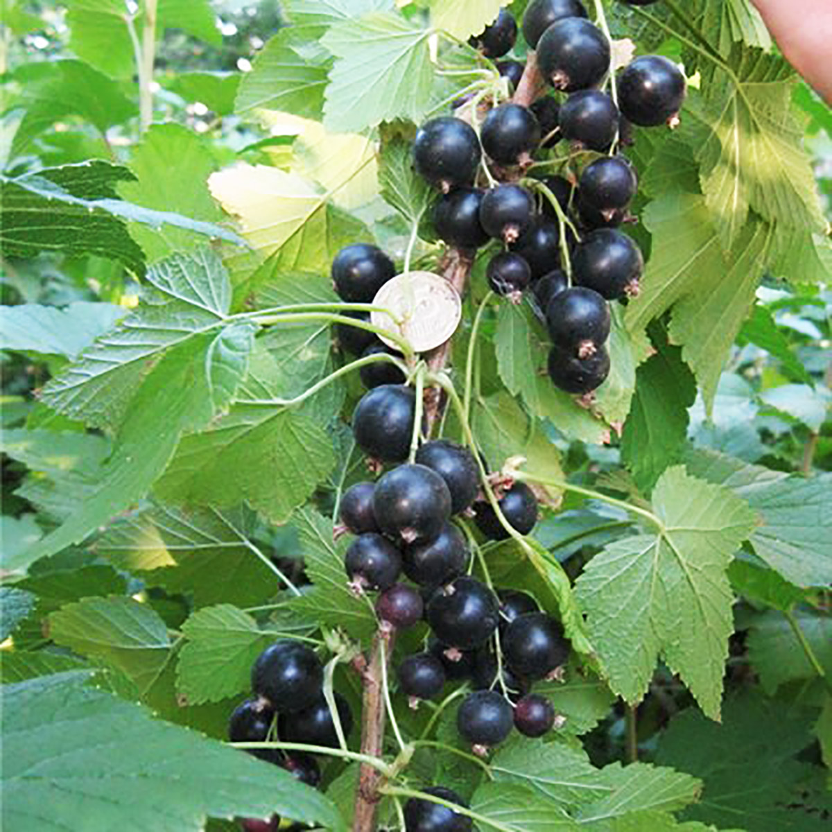ПЛОДИ: ягоди великі, одномірні, середньої маси 1,7-2,1 г, великі 3,2-3,6 г, зігнуто-овальні, чорні, блискучі. Шкірка міцна, еластична, з сухим відшаруванням. М’якуш зеленувато-коричневий, помірно ароматний, приємний кисло-солодкий смак (4,25-4,5 бала). Дозрівають дружно, одночасно. Вживаються у свіжому вигляді, придатні для заморожування, виготовлення високоякісних продуктів переробки (соки, желе, винні матеріали).